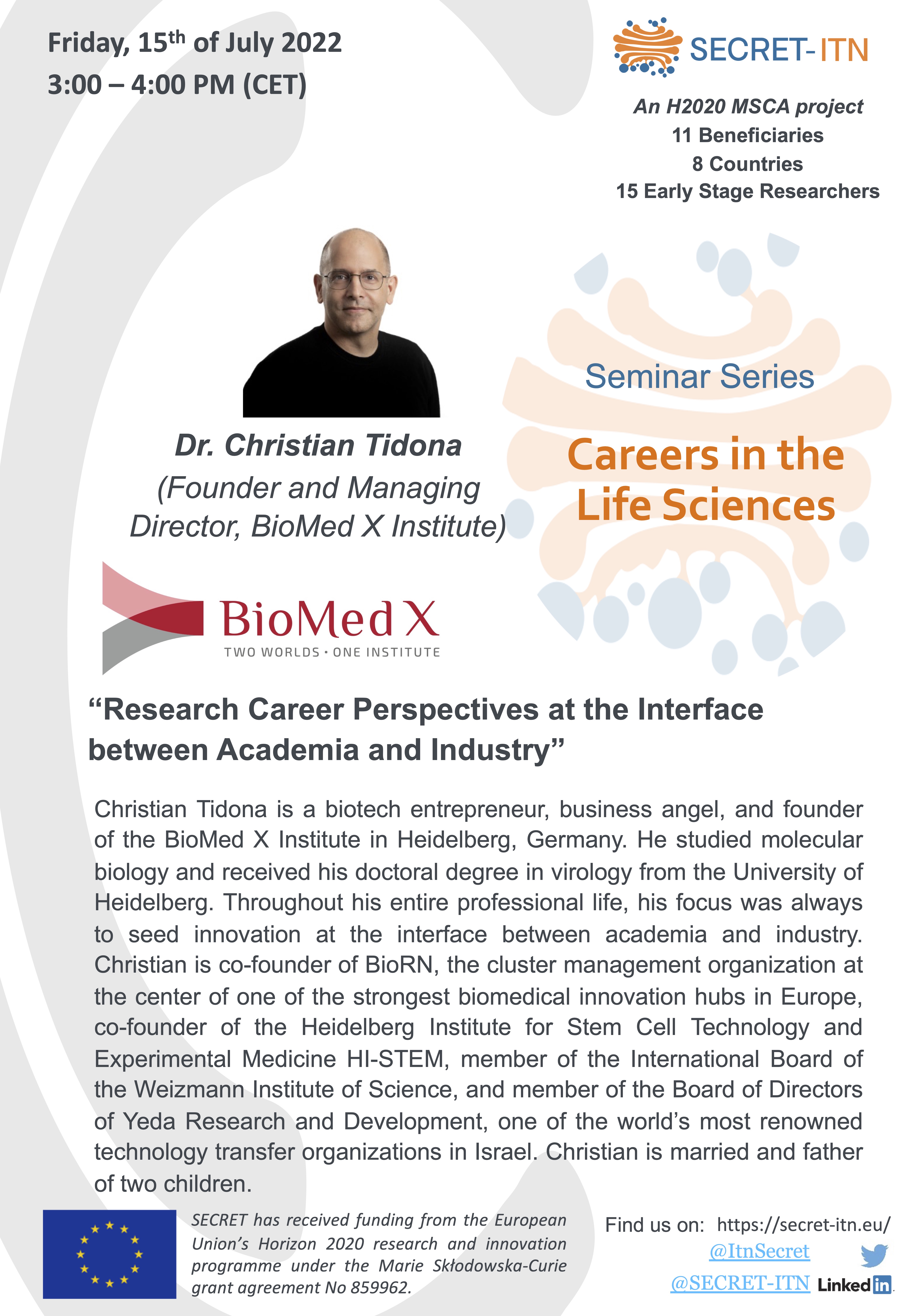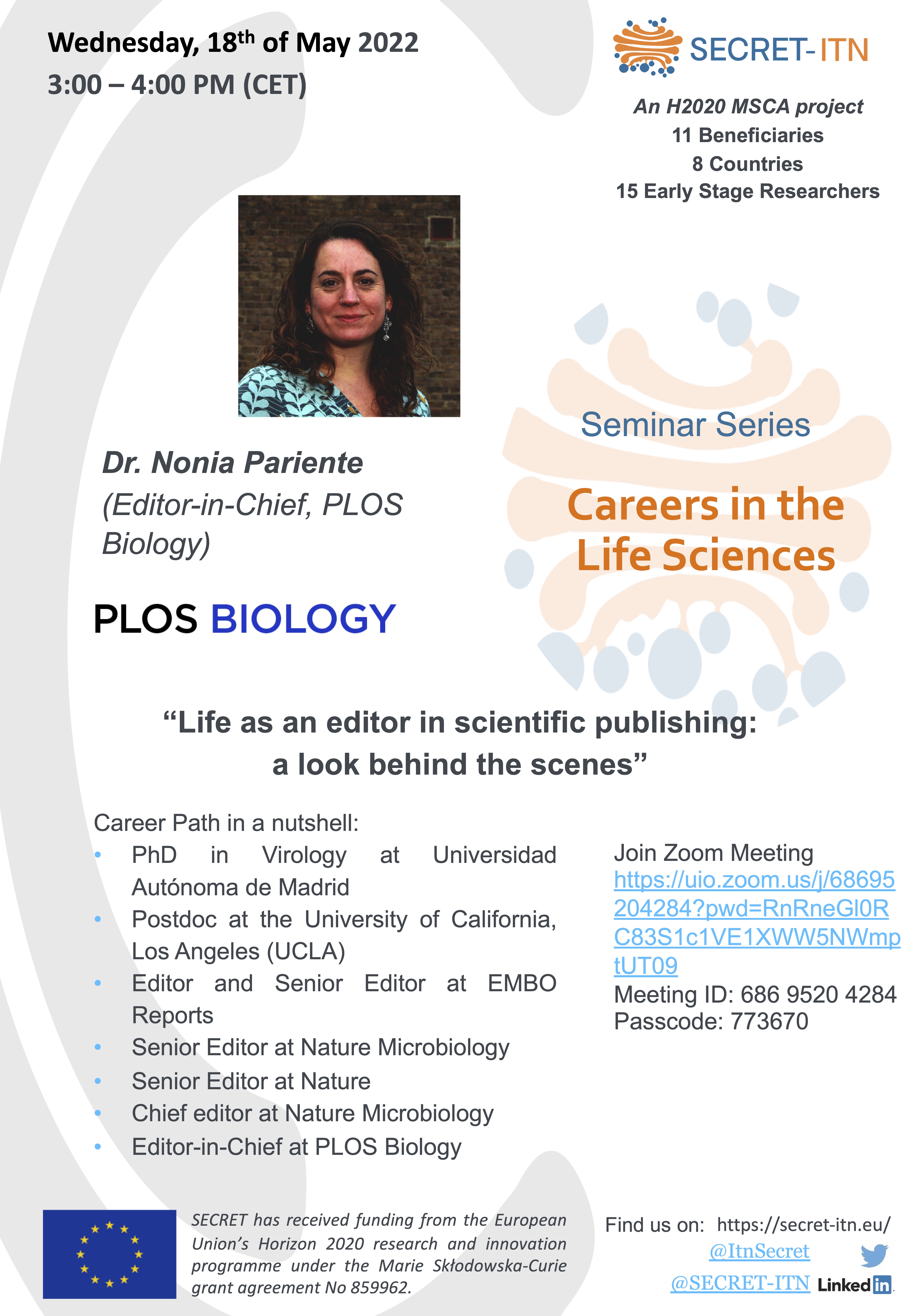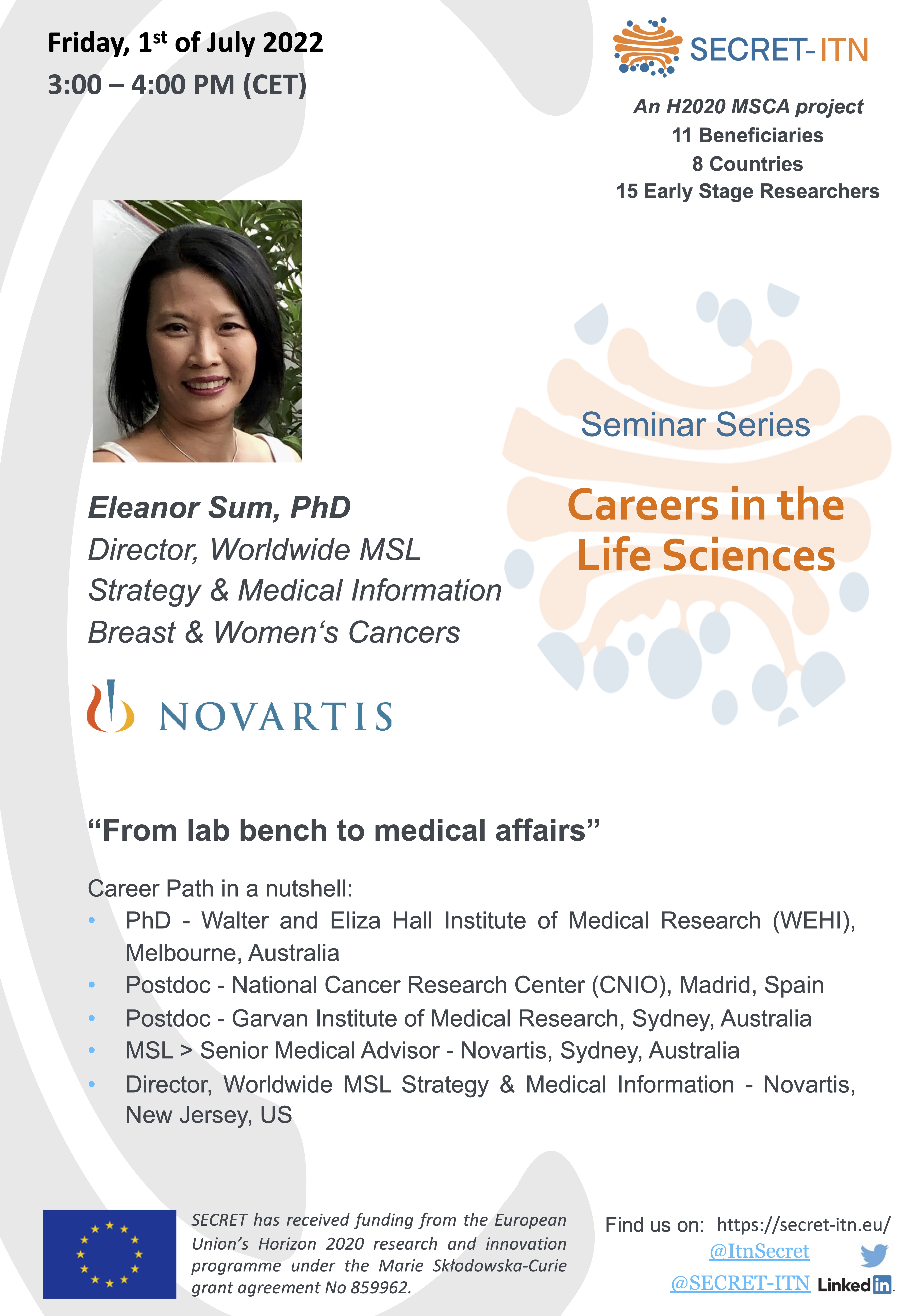 The SECRET ITN “Careers in the Life Sciences” Seminar series: