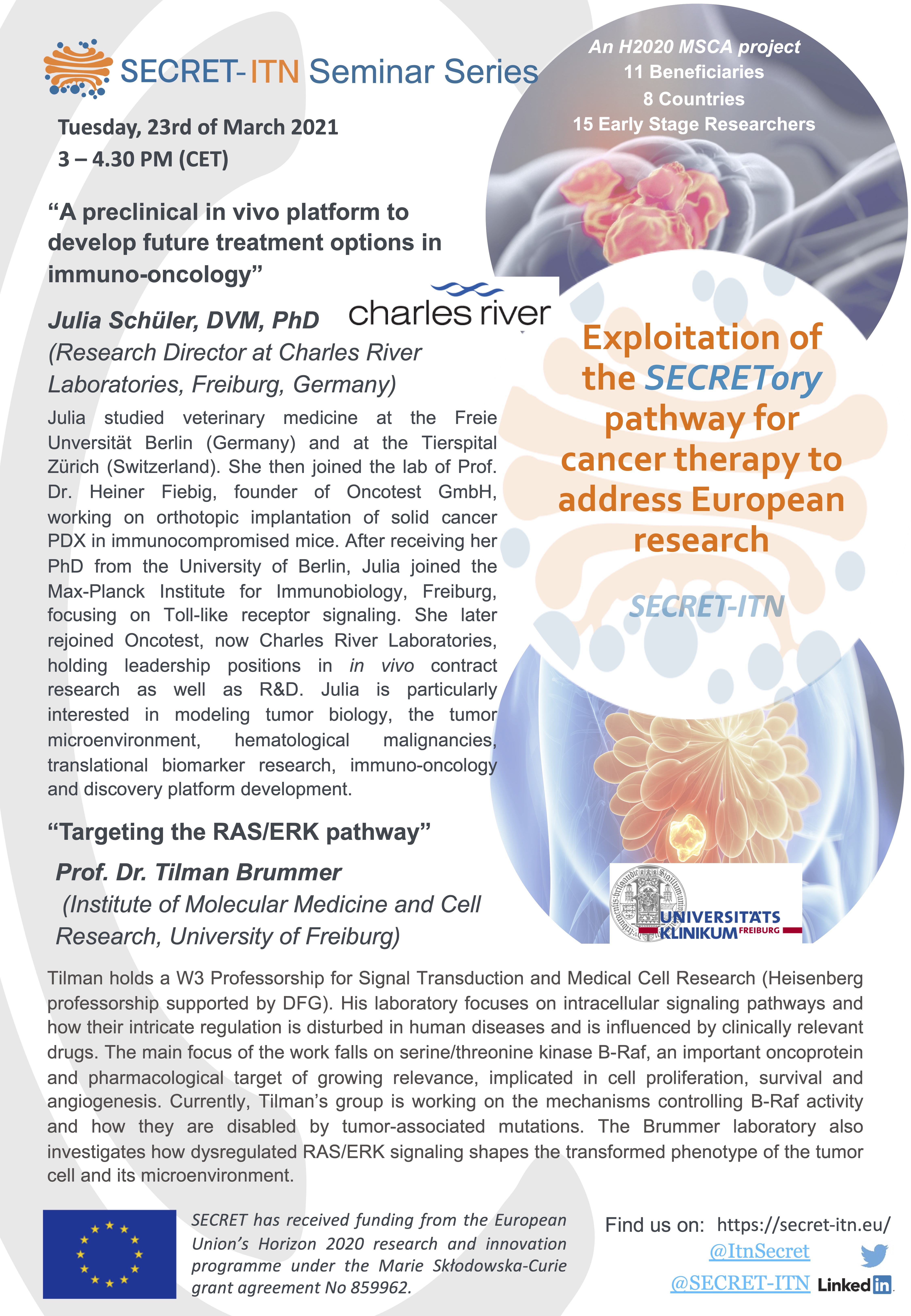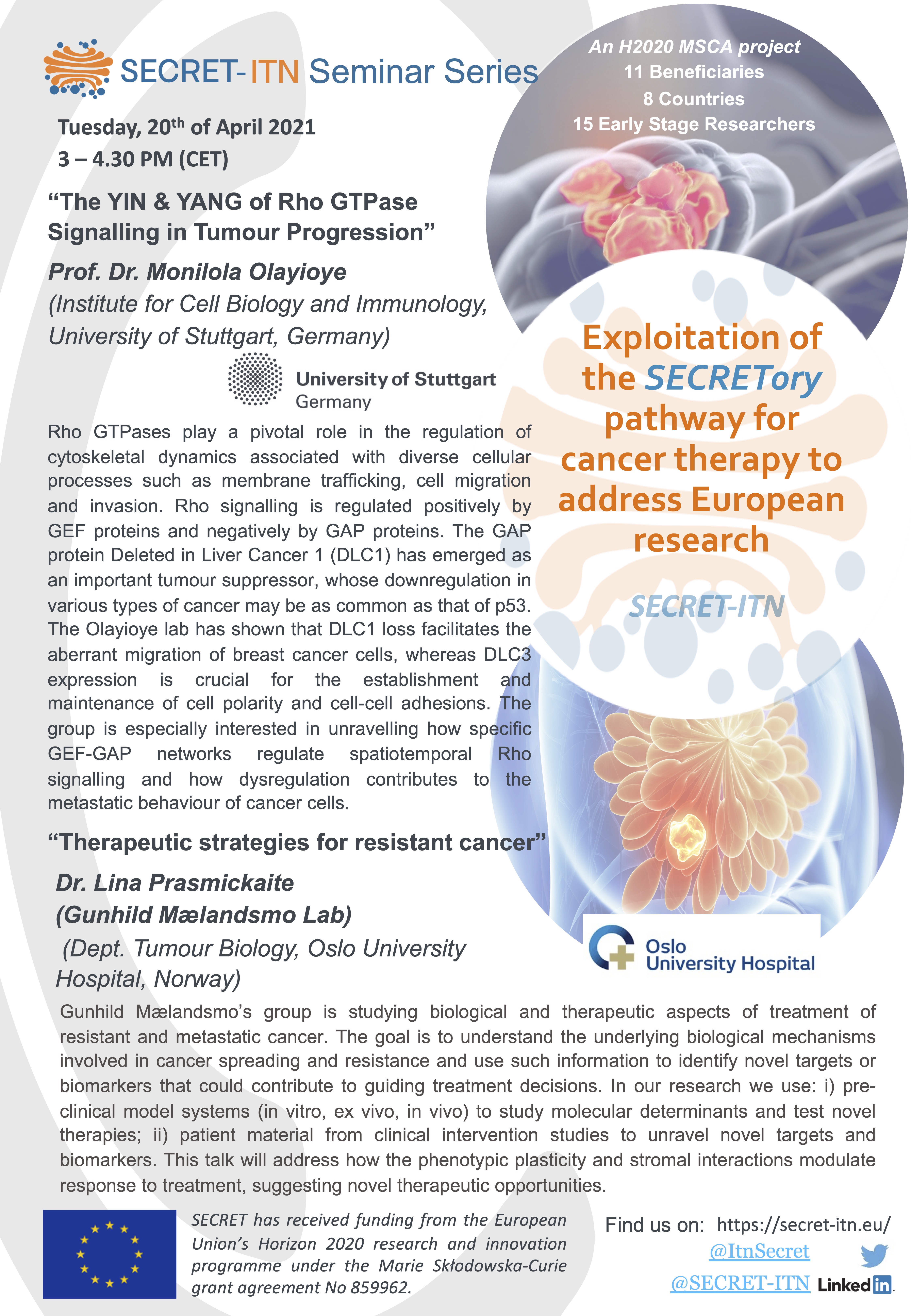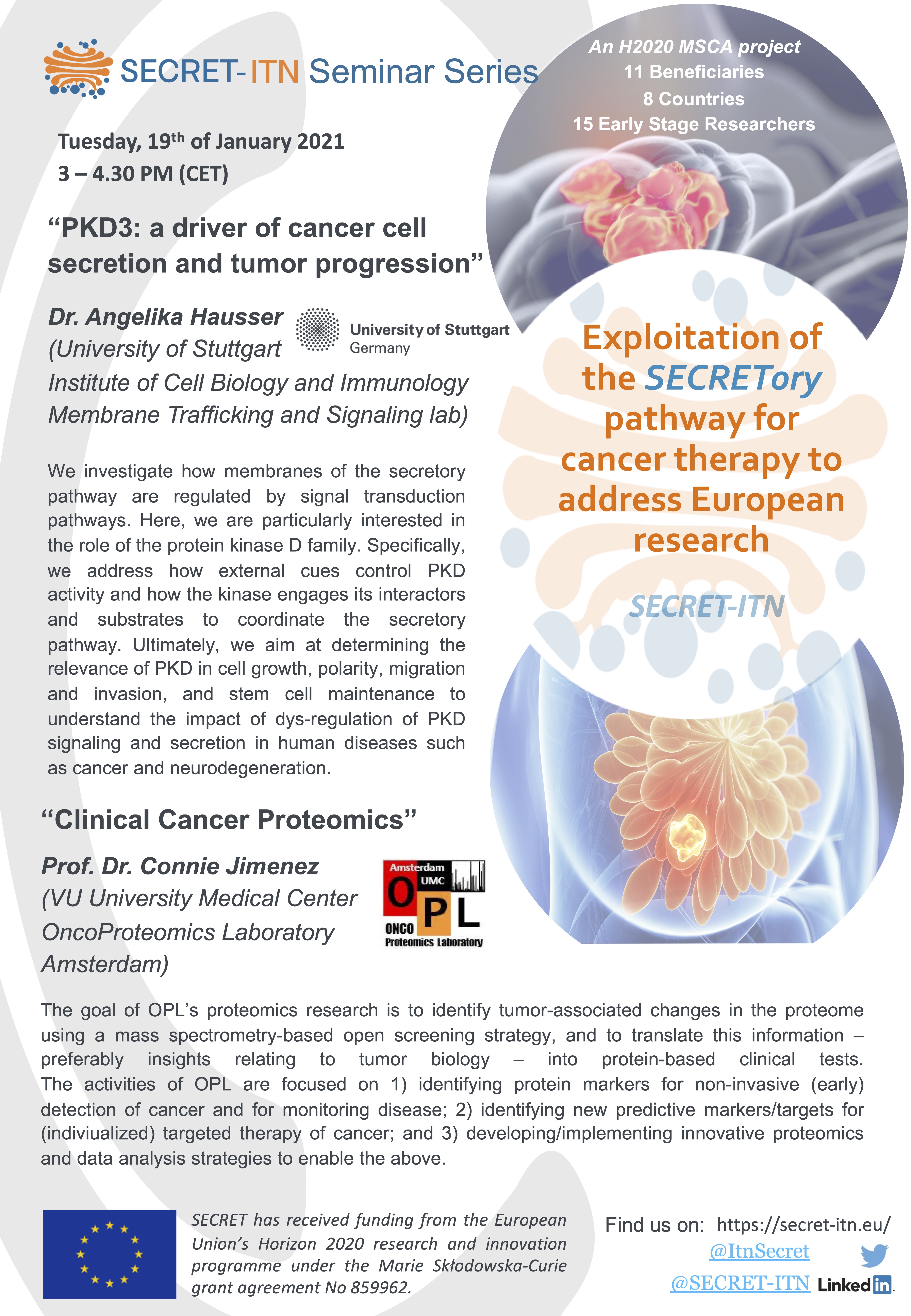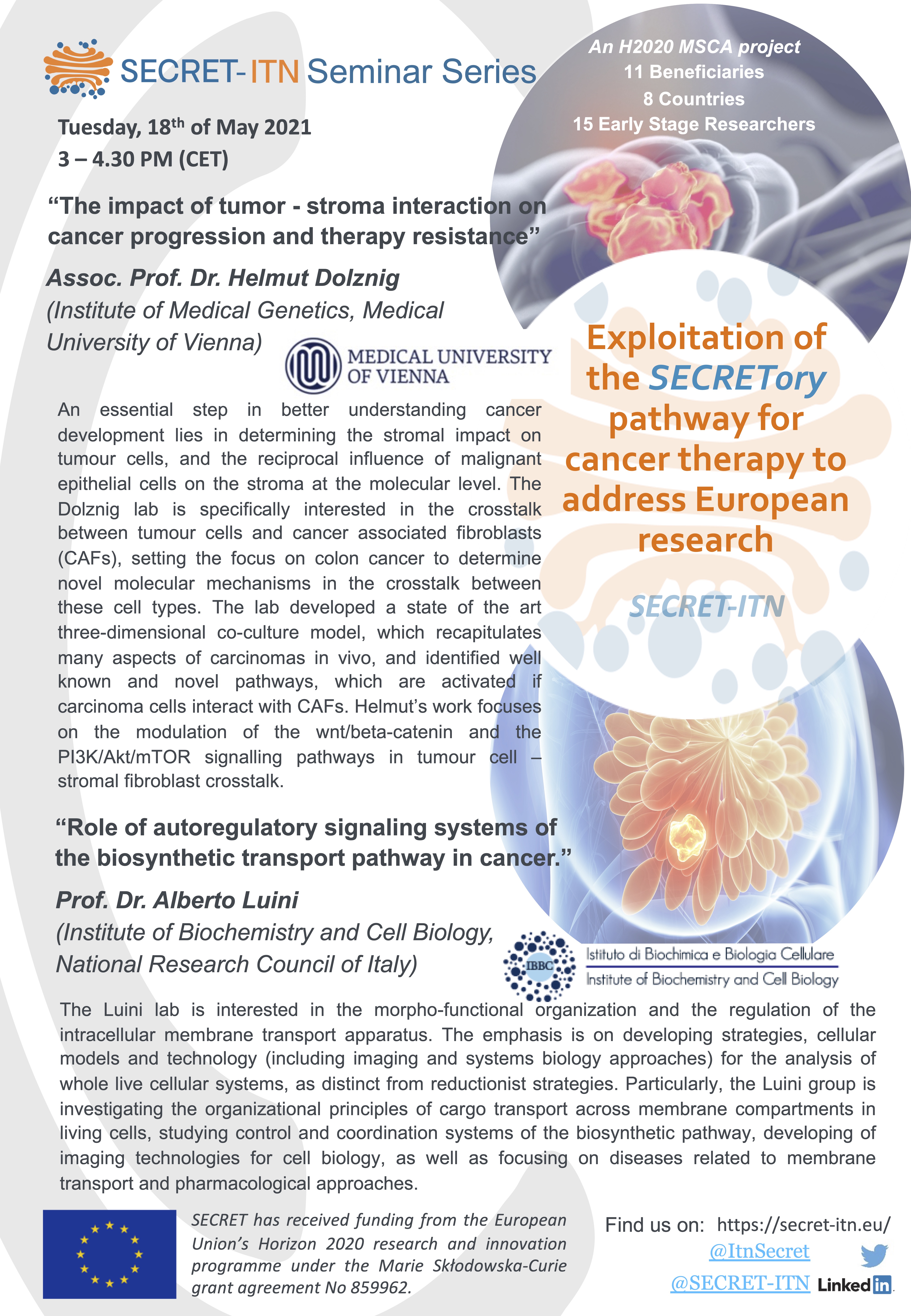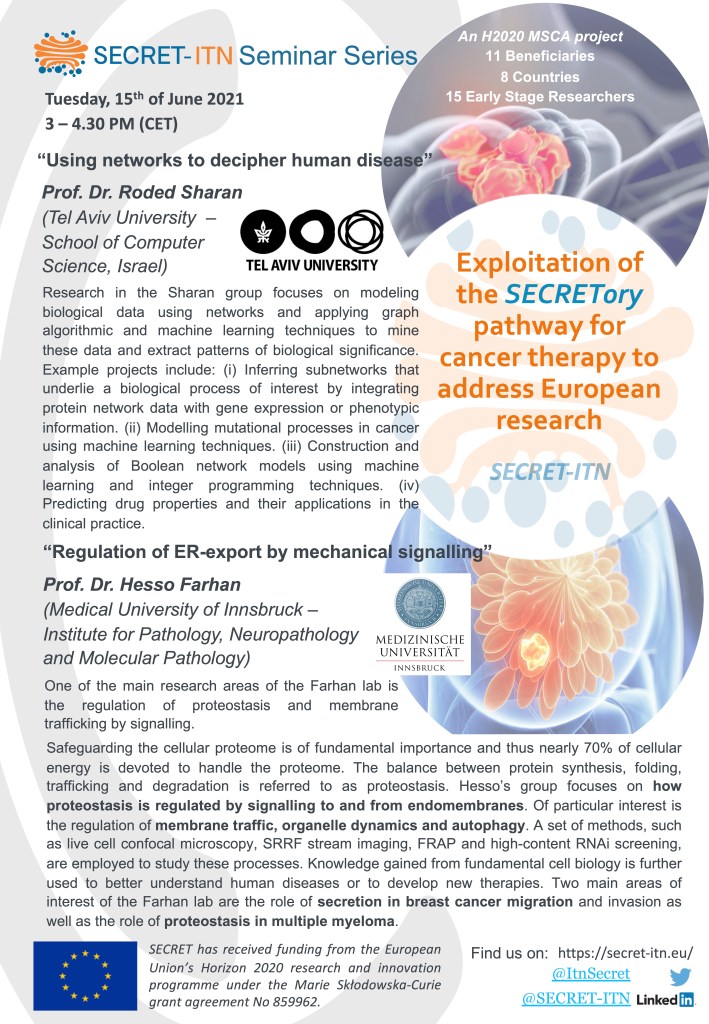 The SECRET ITN Seminar series in 2021 was going over the course of half a year, and each PI could present the work of his/her lab, and be able to discuss it with all consortium members, other PIs and students alike. The series started in January 2021, with monthly sessions and each session comprised two PI presentations and the associated Q&A sessions.